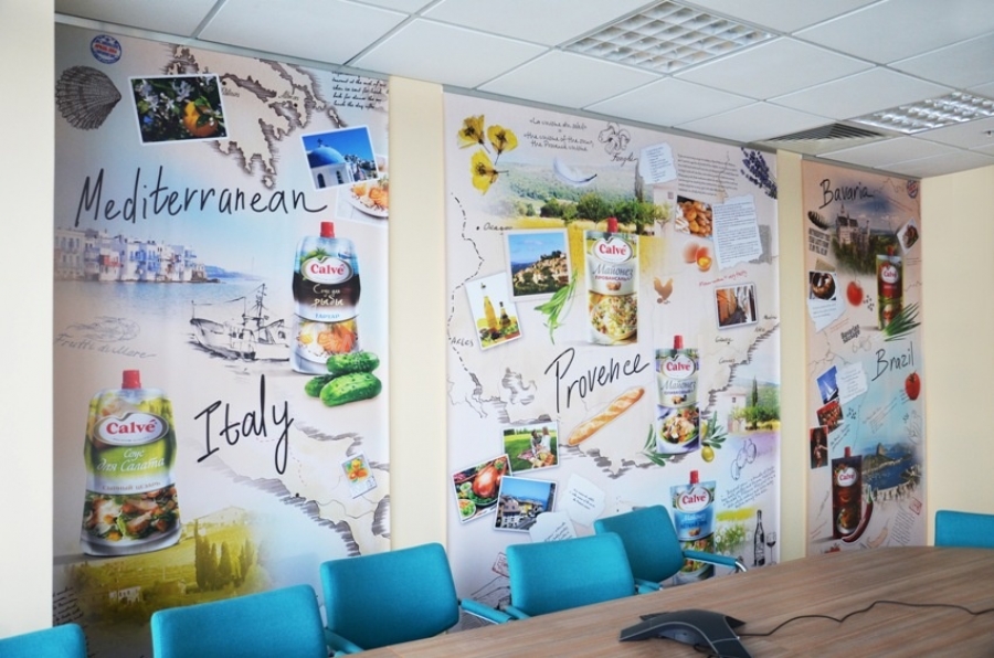- 3. Настенные. Широкоформатный баннер на стену в офис — эффективный маркетинговый инструмент, с помощью которого удастся улучшить имидж компании и повысить уровень лояльности клиентов. Размер и стоимость изделия определяется в индивидуальном порядке при выполнении замеров на объекте.
