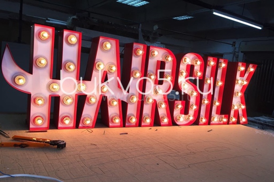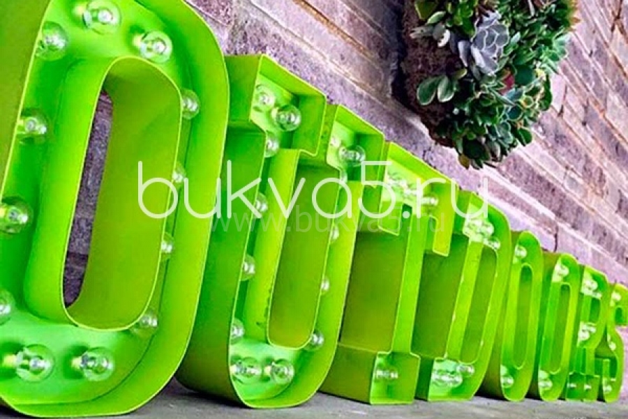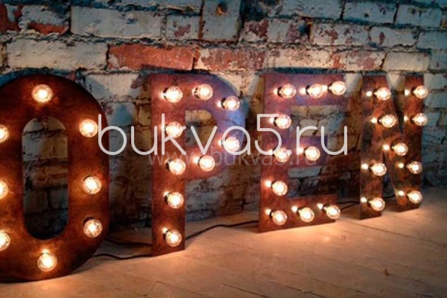 Изготовление букв лампочками осуществляется под ключ: