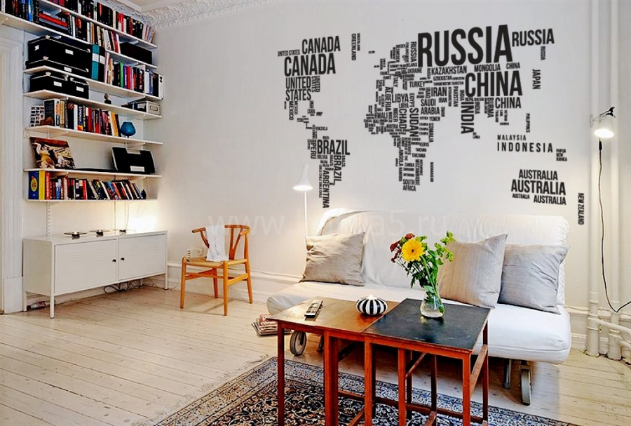 - 3. Хаотичное размещение символов разных размеров и шрифтов послужит отличным украшением спальни в стиле модерн.