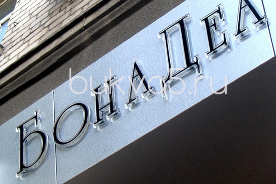 Характеристика: буквы из белого и цветного органического стекла любой толщины (плоские 2-20 мм, объемные без ограничений), прозрачного и белого цвета и цветные варианты, любые форматы и размеры под заказ.