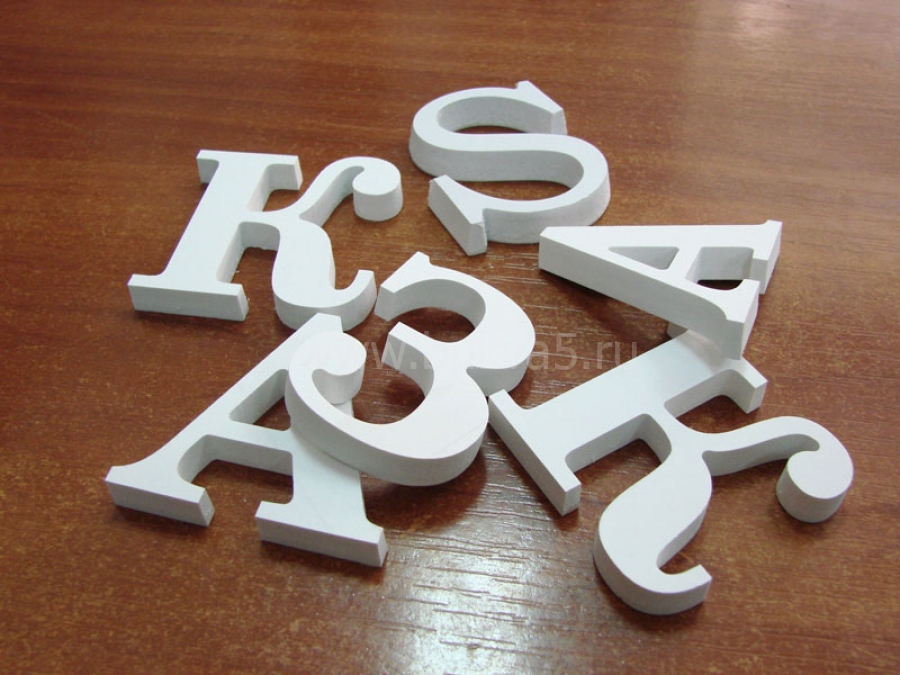 Характеристика: буквы из белого и цветного пластика, матовая и глянцевая поверхность, любые толщины, форматы и размеры под заказ для рекламных и декоративных задач.