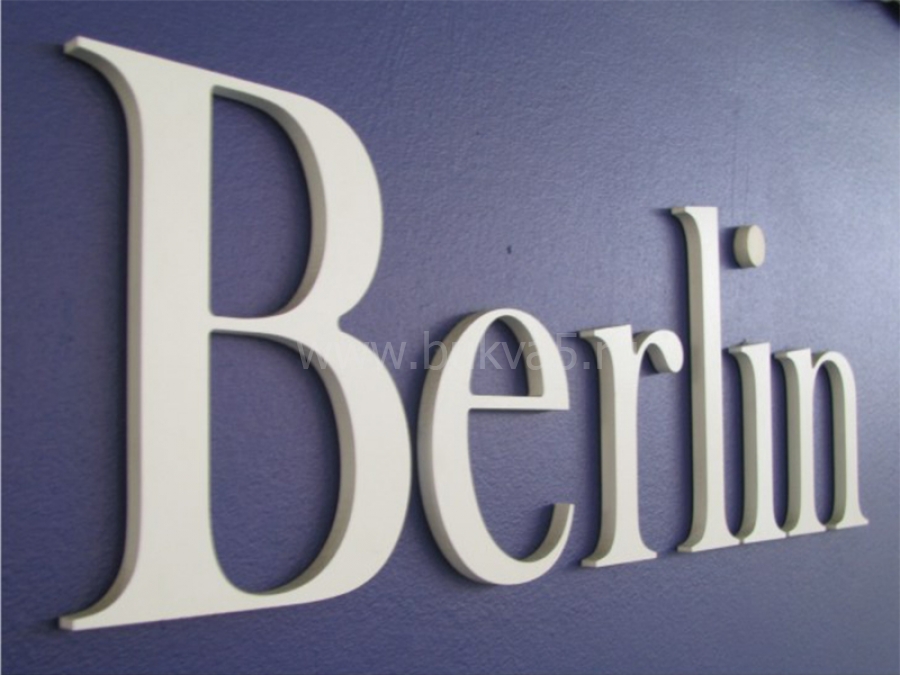 Псевдообъемные буквы из ПВХ с креплением на стену с помощью дистанционных держателей.