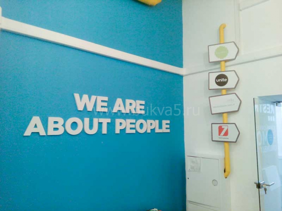 Характеристика: буквы из белого и цветного материала для крепления на стены с помощью клеевого слоя, а также механического крепления, например, выносных держателей, любые форматы и размеры под заказ.