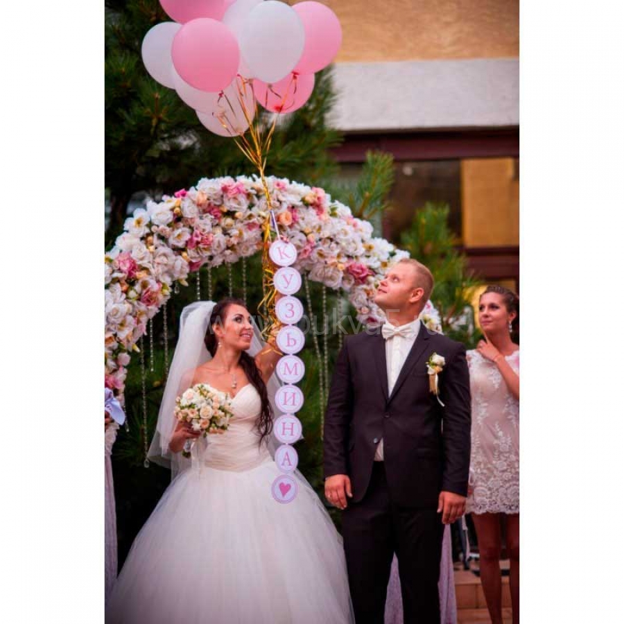 Вы можете остановить свой выбор на монограмме, фамилии, инициалах, именах, а также разнообразных словах, к примеру «love», «с днем свадьбы» и др.