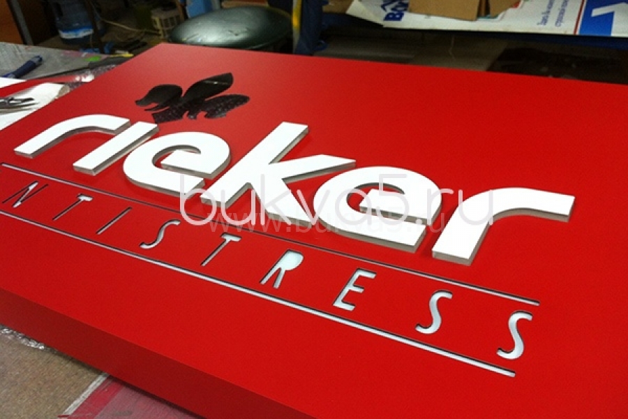 Описание. Технология инкрустации подразумевает фигурную резку трафареты в объемном или плоском коробе из композита, в который уже вставляются буквы, вырезанные из акрила или оргстекла, их фронт немного вынесен вперед, обеспечивая выпуклую форму изделия. Светодиодные световые элементы находятся внутри конструкции вывески. Буквы же с лица (фронта) закрыты светоблокирующим цветным материалом – пленкой, пластиком, полистиролом, поэтому свет отражается от него и падает на фронт самого короба, образуя свечение, как по торцам, так и светящийся ореол вокруг букв. Такой эффект также называют контражурной подсветкой. Использование в качестве светового элемента светодиодов гарантирует долгий срок службы изделия, а также минимальные затраты электроэнергии.
