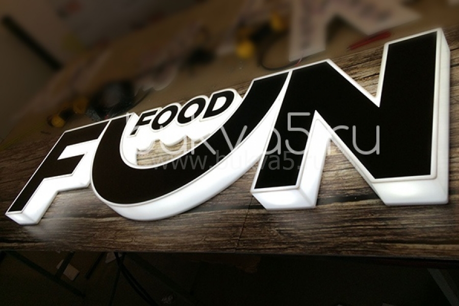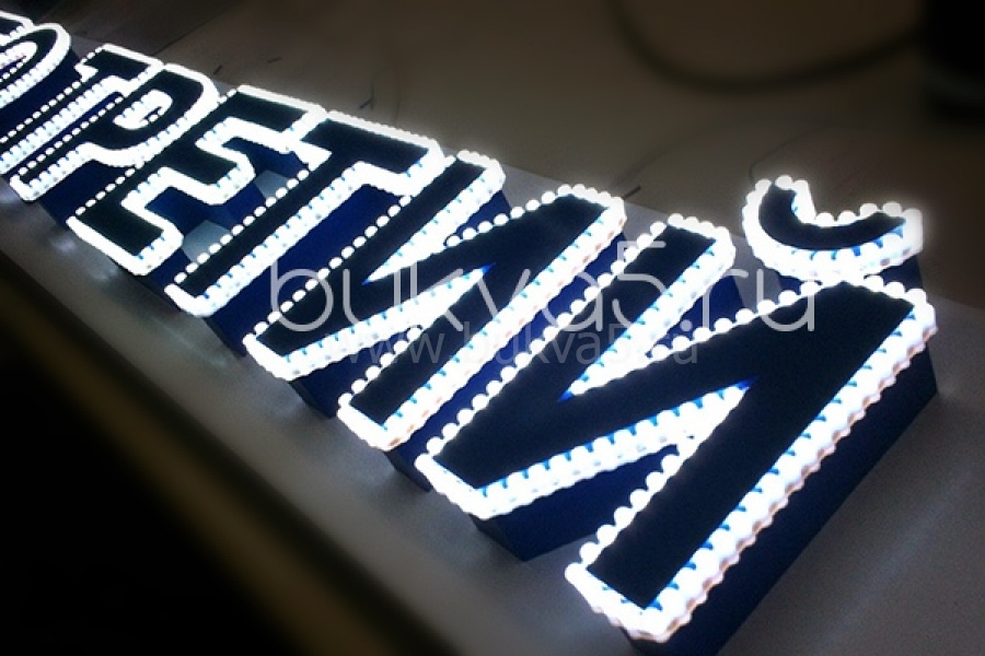 Самый популярный продукт: рекламные псевдообъемные буквы с контурной светодиодной подсветкой.