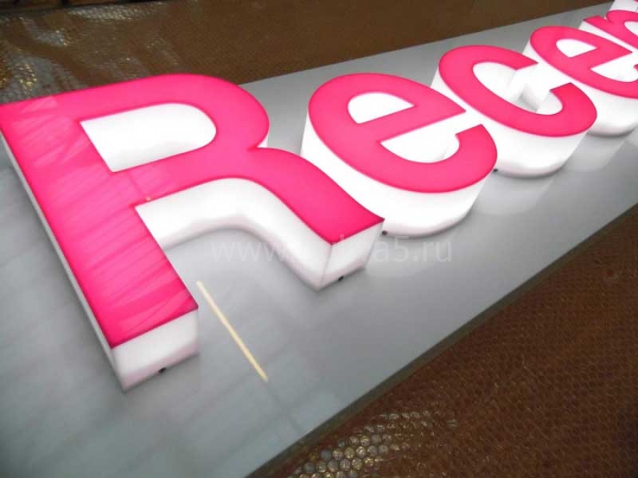 - - Органическое стекло и акриловые материалы. Оргстекло и акрил отлично пропускают свет, поэтому чаще всего их применяются для букв с лицевой или торцевой подсветкой. Идеально подходят для отдельных объемных букв, а также для сложных световых вывесок с внутренними источниками свечения.