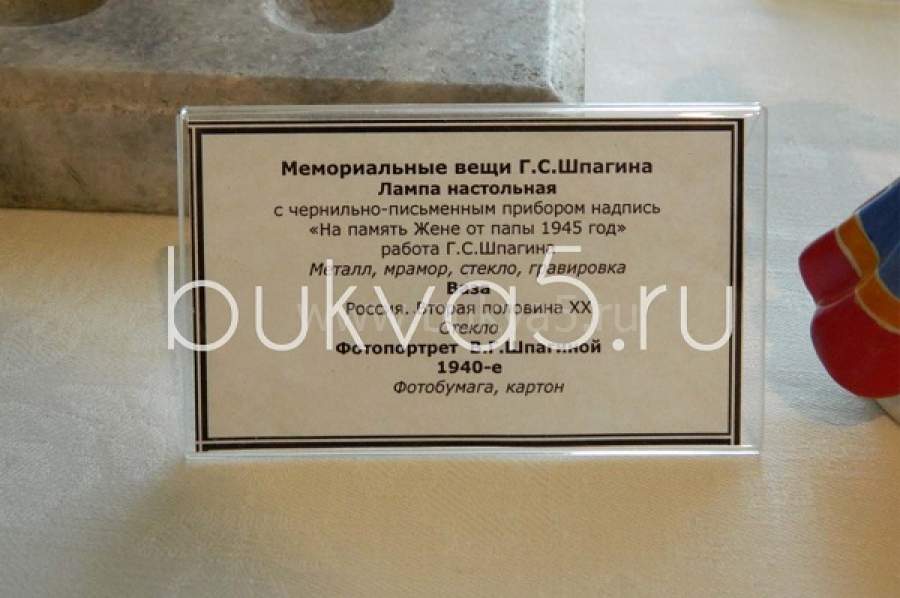 Широкий выбор вариантов этикетажа для выставок и музейных экспозиций, подписи для: