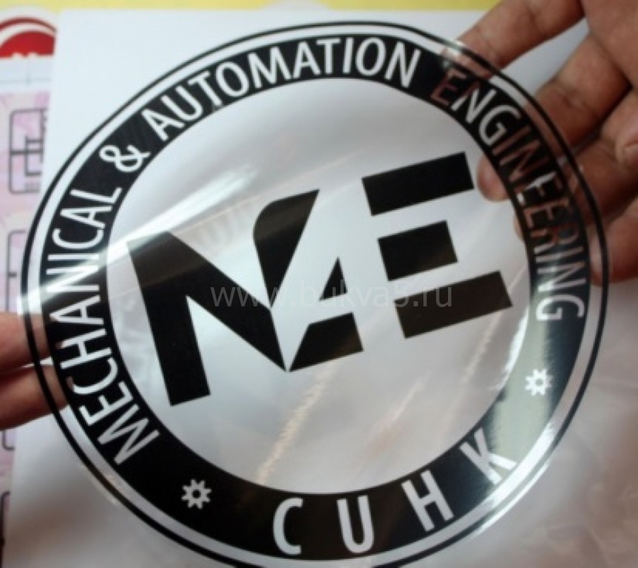 Логотип из самоклеющейся виниловой пленки. Может изготавливаться в двух вариантах – с печатью изображения и вырезанными элементами с помощью контурной резки с накаткой на монтажную пленку. Недорогое изделия, применяемое для рекламного и корпоративного брендирования разнообразной продукции и объектов.