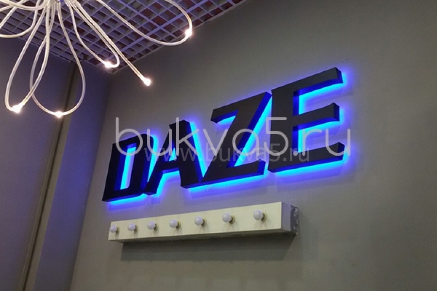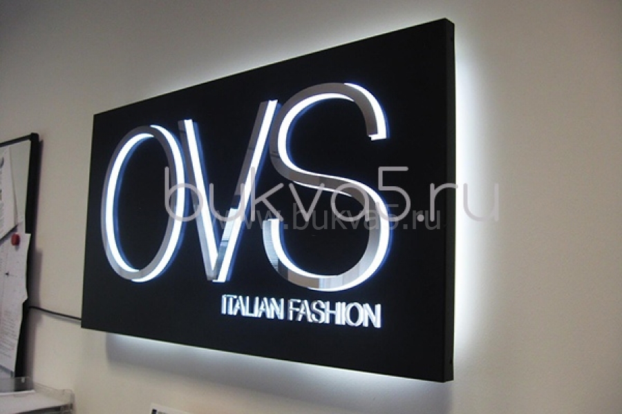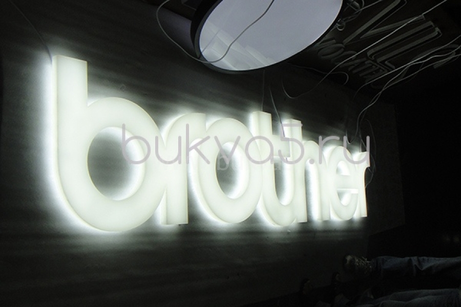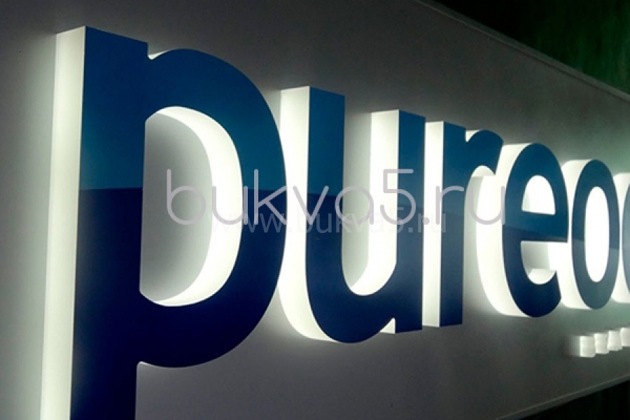 Контражур. Логотип с контурной контражурной подсветкой, свет падает на стену или подложку, образуя световой ареол вокруг вывески. Может изготавливаться как в плоском, так и псевдообъемном исполнении – с креплением на светодиодные держатели.