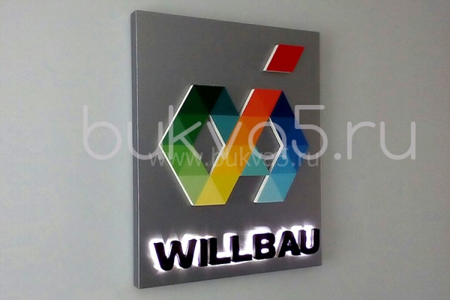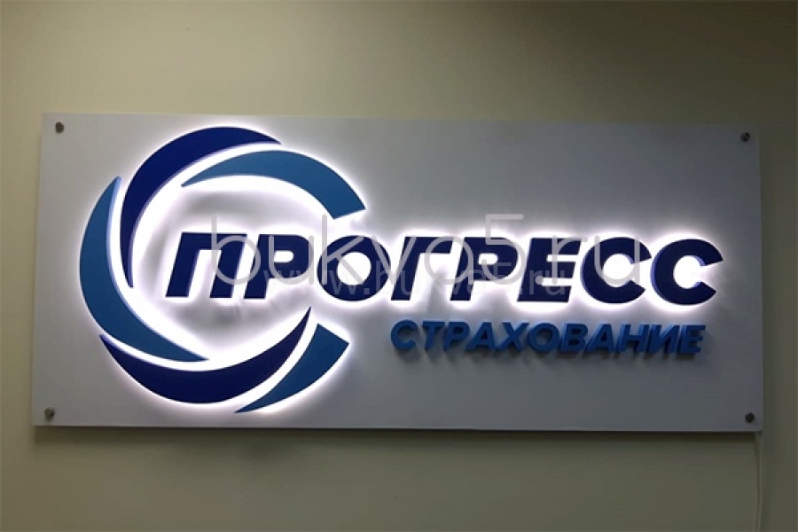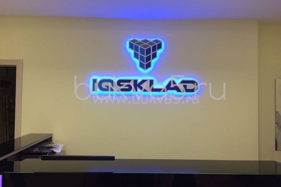Самый популярный вариант: псевдообъемные и объемные логотипы с контражурной светодиодной подсветкой по контуру вывески, применяются для оформления офисов и зон ресепшн.