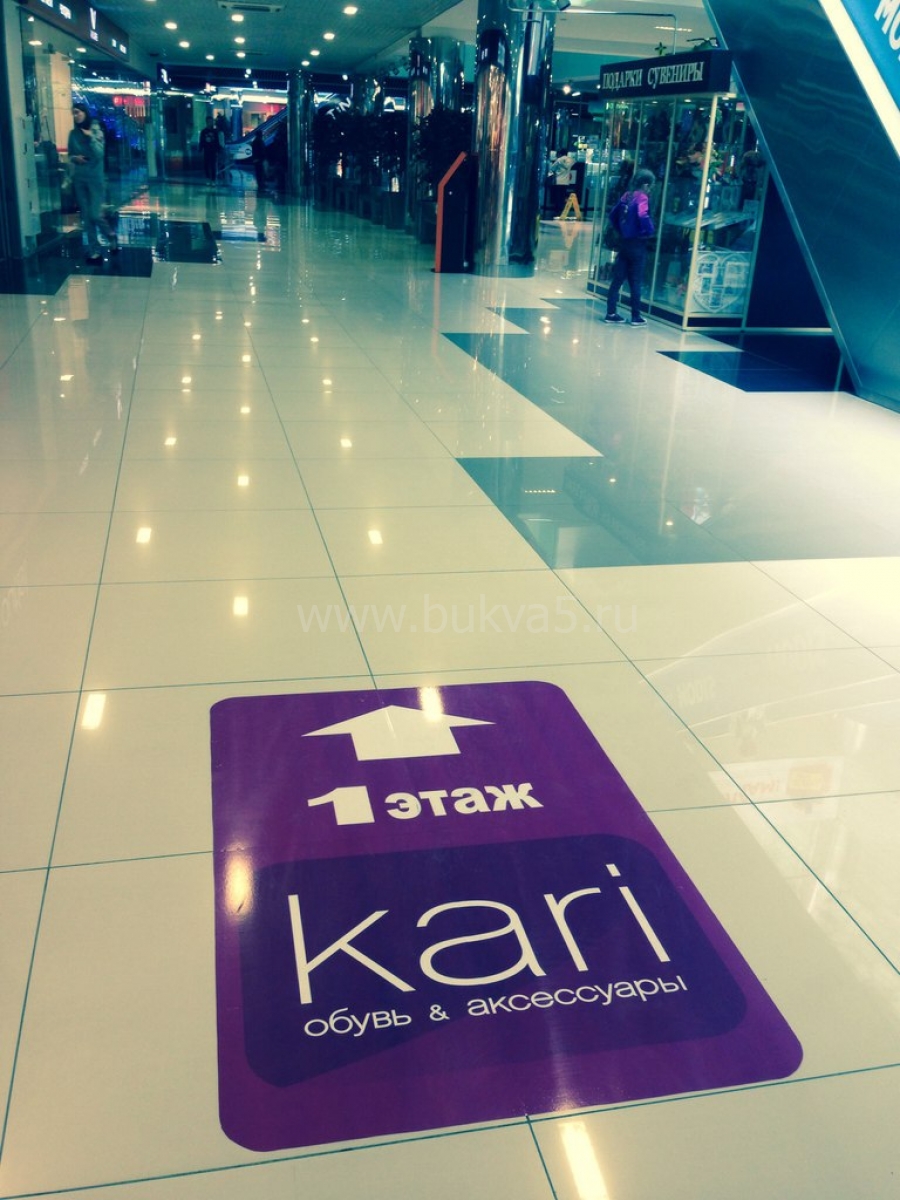 Нестандартная навигация на полу привлекает внимание и создает преимущество перед конкурентами. Система знаков проводит посетителя к отделу, что подталкивает к совершению покупки. Особенно это важно, если отдел располагается в отдалении от наиболее проходимых маршрутов в ТЦ. Предлагаем изготовление напольной навигации следующих видов: