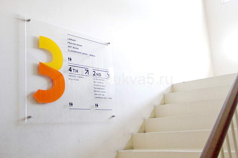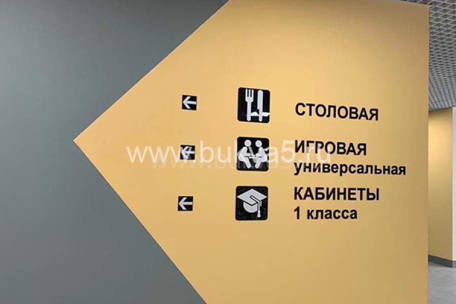 Компания "Буква 5" предлагает изготовление на заказ и установку системы навигации в школе, которая поможет легко ориентироваться на этажах и в помещениях. Ведется производство единичных табличек и указателей, а также реализация комплексных навигационных проектов для школьных помещений. Для производства используются интерьерный пластик, оргстекло, композит, самоклеящаяся пленка. Современные материалы будут долговечными и безопасными в использовании.