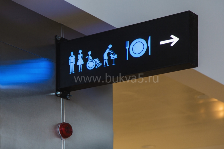 Система навигационных знаков будет простой, удобной и понятной даже самым маленьким посетителям. Логичное расположение знаков позволит без труда пройти в нужный отдел и сделать желанную покупку.