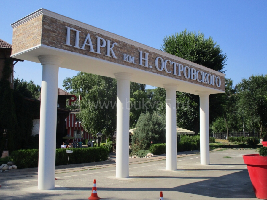 - 1. Оформление входной группы. Оно включает световую вывеску с названием парка или объекта архитектуры, иногда добавляется оформление кассы и основных помещений, находящихся при входе.