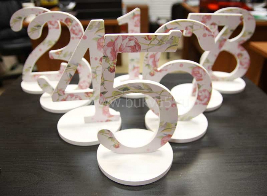 На фото в нашем каталоге представлены красивые объемные цифры различных видов: большие и маленькие, из пенопласта, пеноплекса, дерева и фанеры, черно-белые, цветные (золотые, красные, желтые, синие, розовые, красно-белые), а также световые изделия с подсветкой. При производстве используется ряд дизайнерских решений: