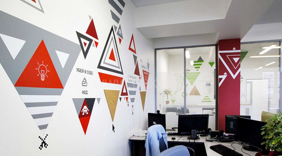 - 1. Фотообои. Это оригинальное и необычное решение, которое позволяет стильно оформлять помещения, создавая уникальный имидж и улучшая репутацию компании. Оформление офисного кабинета фотообоями, выполненными в фирменной стилистике предприятия, произведет положительное впечатление на потенциальных клиентов, деловых партнеров и сотрудников.