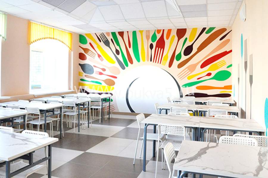 "Буква 5" предлагает креативное оформление школьной столовой, необычный дизайн стен будет соответствовать стилю современной школы. Мы реализуем комплексные оформительские проекты и изготавливаем единичные декоративные изделия (стенды, уголки, плакаты, баннеры, фотографии и другие украшения). Все это помогает создать комфортную и уютную обстановку, в которой будет приятно находиться детям и взрослым.