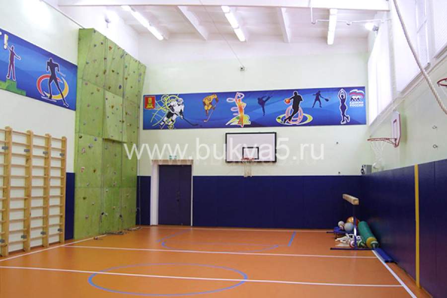 Современное оформление спортзала в школе на заказ. Дизайн стен, окон, пола школьного спортивного зала. Комплексные проекты и единичные изделия: настенные стенды, наклейки, надписи, баннера, рисунки, панно и т. д. Креативные и популярные «говорящие стены» для развивающих и обучающих целей, а также просто элементы декора и настенные украшения. Широкий выбор вариантов производства изделий для оформления школьных помещений под ключ. Доставка и монтаж по любому адресу Москвы и Подмосковья.