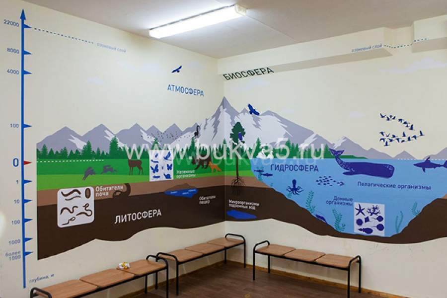 Распространенная тематика для декора стен школьных учреждений: