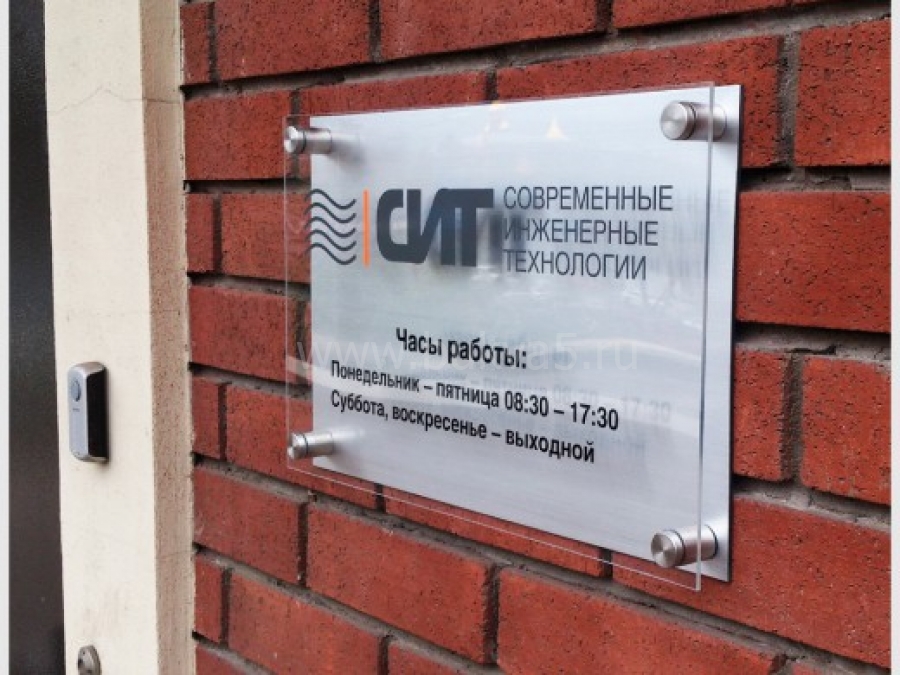 - 1. Вывеска над дверью, логотип для помещений внутри торговых и бизнес-центров. Это наиболее важный элемент, ведь по его оформлению посетитель будет судить о самой организации.