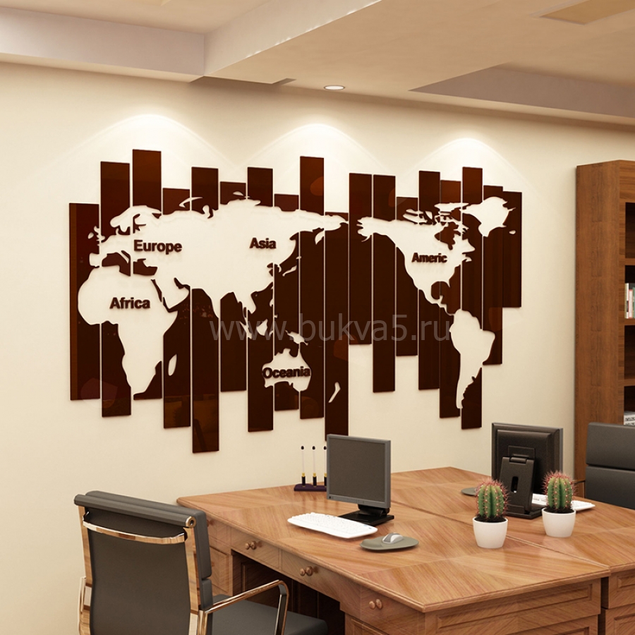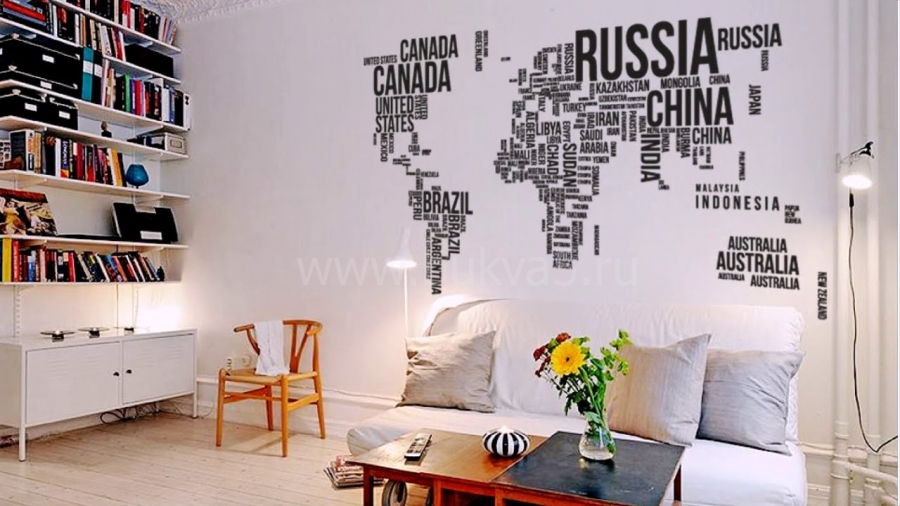 Настенные панно из букв находят широкое применение при оформлении детских, спален и гостиных. К распространенным решениям относится облако слов определенной тематики, азбука для малышей, карта мира из названий материков, океанов, стран и городов. Но мы не ограничиваемся этими вариантами — опытные дизайнеры внимательно выслушают пожелания и помогут развить идею, предложив нестандартное исполнение. При изготовлении изделий используем различные материалы: