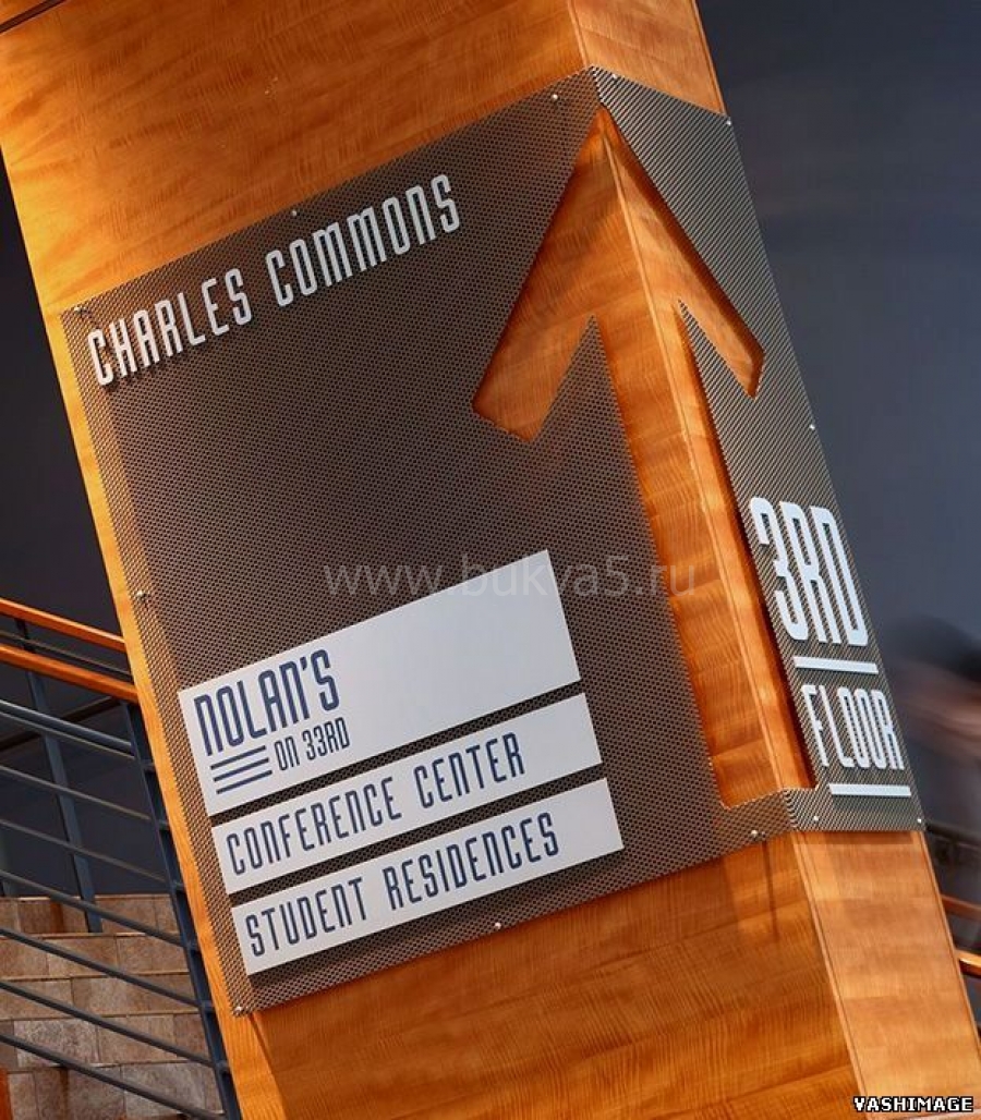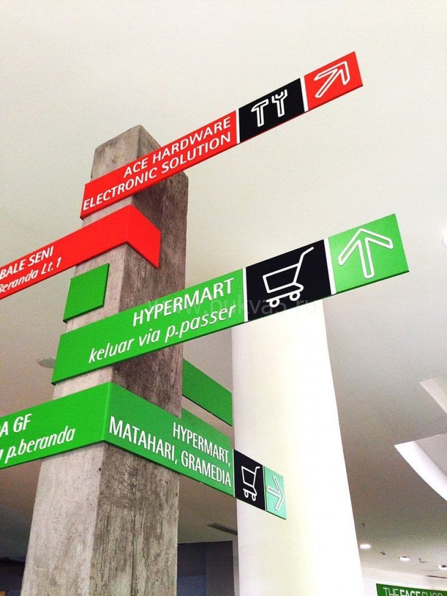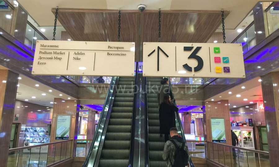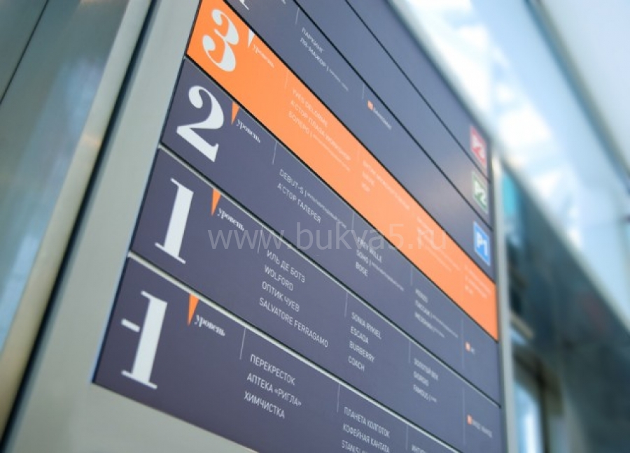 - 2. Элементы информации на навигационных стендах и указателях. Особенно это характерно для ТЦ или бизнес-центров, где названия магазинов и офисов присутствуют везде.