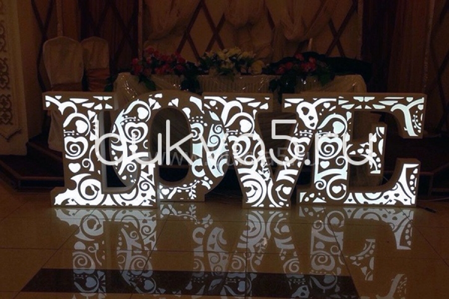 Применение: резные буквы активно используются на мероприятия, свадьбах, а также для оформительских задач.