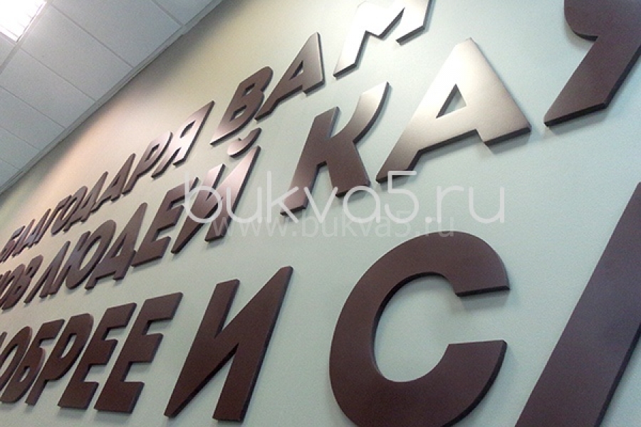 Буквы из пластика. У нас вы можете заказать самоклеящиеся изделия в объемном исполнении из белых и цветных пластиковых материалов толщиной от 1 мм до 2 см. В этом случае клеевой слой наносится на тыльную сторону изделия. Такая продукция можем быть белого цвета, а также покрашены в любые оттенки, даже металлические, например, хром.