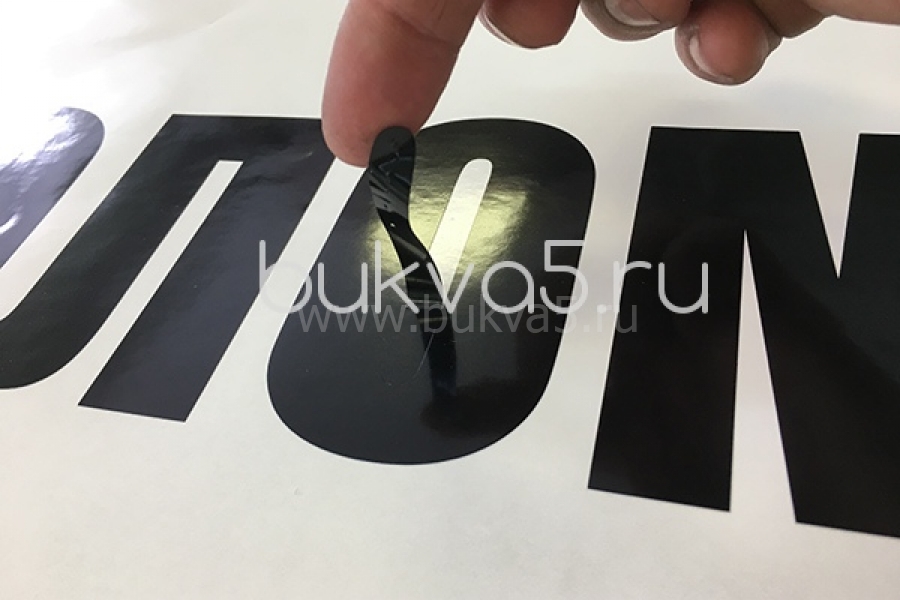 Буквы, вырезанные из самоклеящейся виниловой пленки с помощью контурной плоттерной резки. Это могут быть изделия из белой, цветной, металлизированной и других видов самоклейки.
