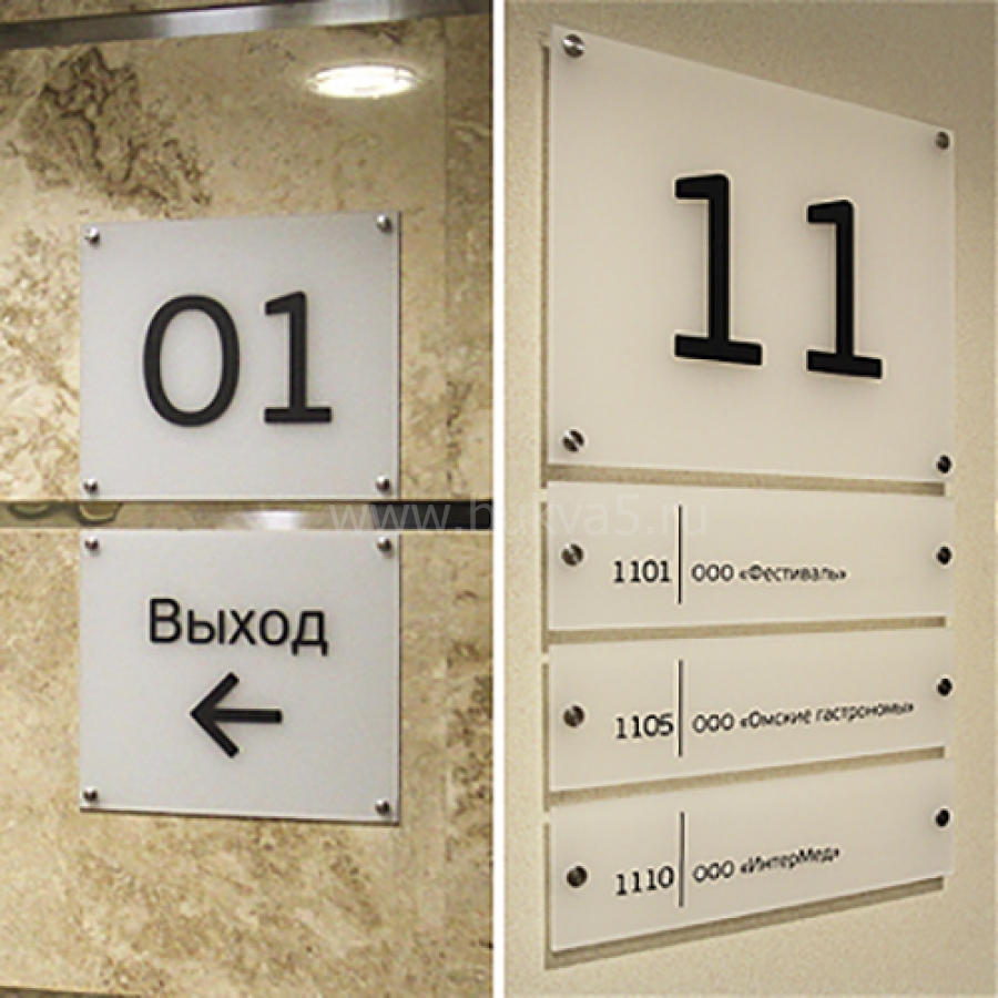 Недорогие пластиковые таблички с нумерацией — распространенный, но не единственный вариант. Для производства используются различные композитные материалы, оргстекло, акриловое стекло и не только. При изготовлении применяются следующие способы оформления: