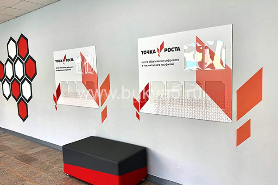 Оформление помещений в рамках проекта «Точка Роста». Современный дизайн классов и кабинетов с применением логотипов и стендов, комплексное оформление стен и всего учебного пространства. Декор помещений под ключ и изготовление отдельных изделий на заказ. Креативные и популярные «говорящие стены» для развивающих и обучающих целей, а также просто элементы декора и настенные украшения. Широкий выбор вариантов производства. Доставка и монтаж по любому адресу Москвы и Московской области.