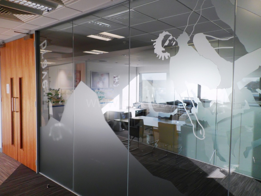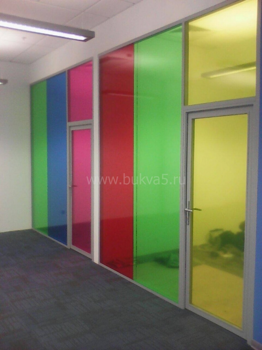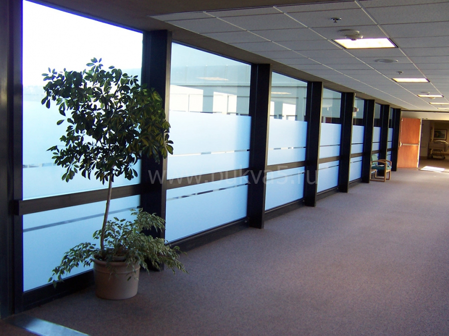 - 3. Создание корпоративной атмосферы. Тонировка офисных перегородок, окон и стекол матовой пленкой позволяет повысить узнаваемость бренда. При нанесении фотопечати, логотипов, надписей, вырезанных букв и орнаментов соблюдается корпоративных стиль.